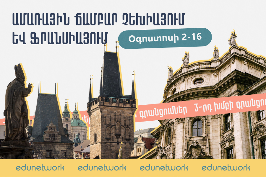 Ամառային արձակուրդները անցկացրե՛ք մեզ հետ Պրահայում և Փարիզում։ Էդու Նեթվորքն առաջարկում է կարճաժամկետ ամառային ճամբար, որի ընթացքում Դուք հնարավորություն կունենաք բարելավել Ձեր օտար լեզվի մակարդակը (անգլերեն կամ չեխերեն), այցելել Եվրոպայի ստրում տեղակայված հարուստ մշակութային ժառանգությամբ երկրներ և ձեռք բերել միջմշակութային միջավայրում ապրելու հարուստ փորձ։